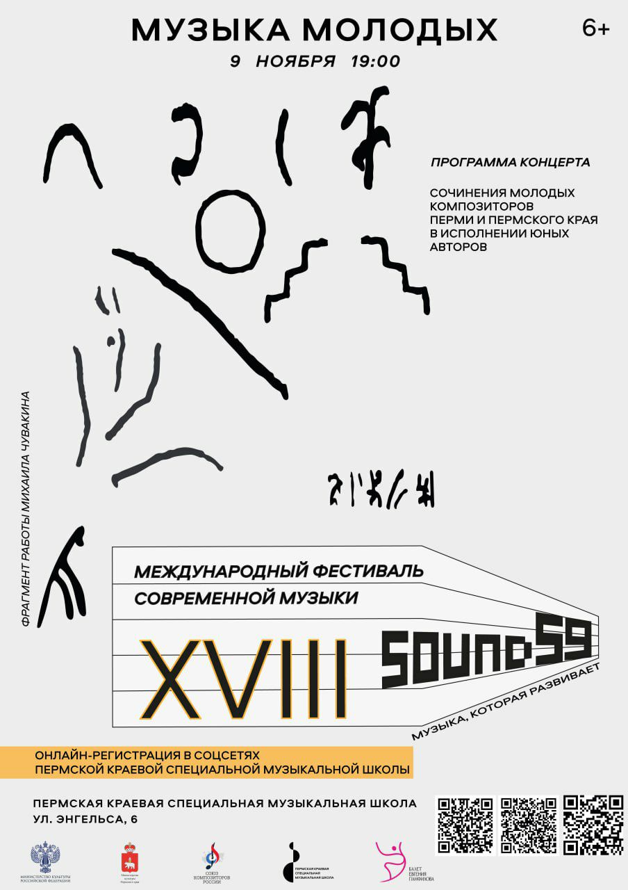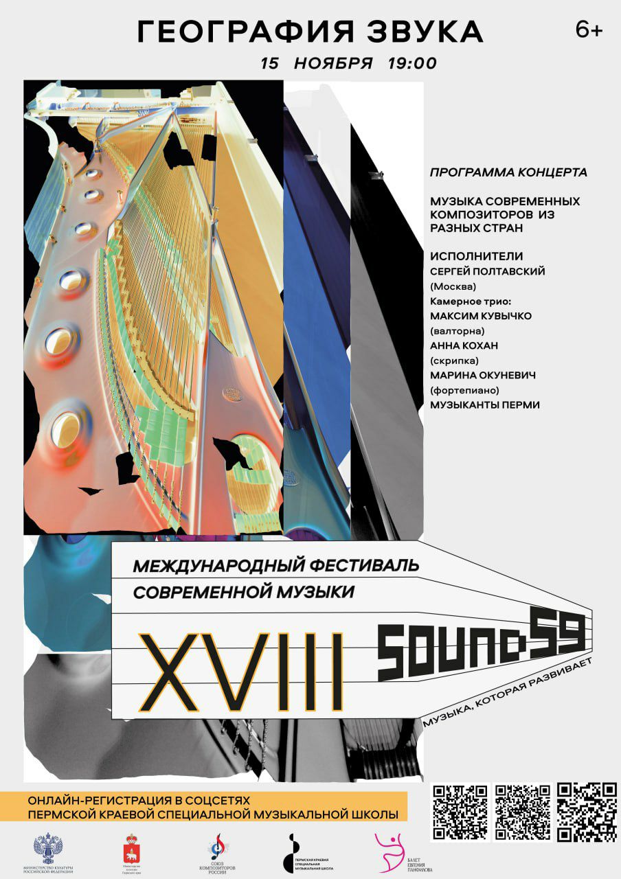 В этом году у XVIII фестиваля «Sound 59» новый дизайн: каждая афиша представляет фрагмент картины современного художника. Подробности при встрече. Ждем Вас на мероприятиях фестиваля!
